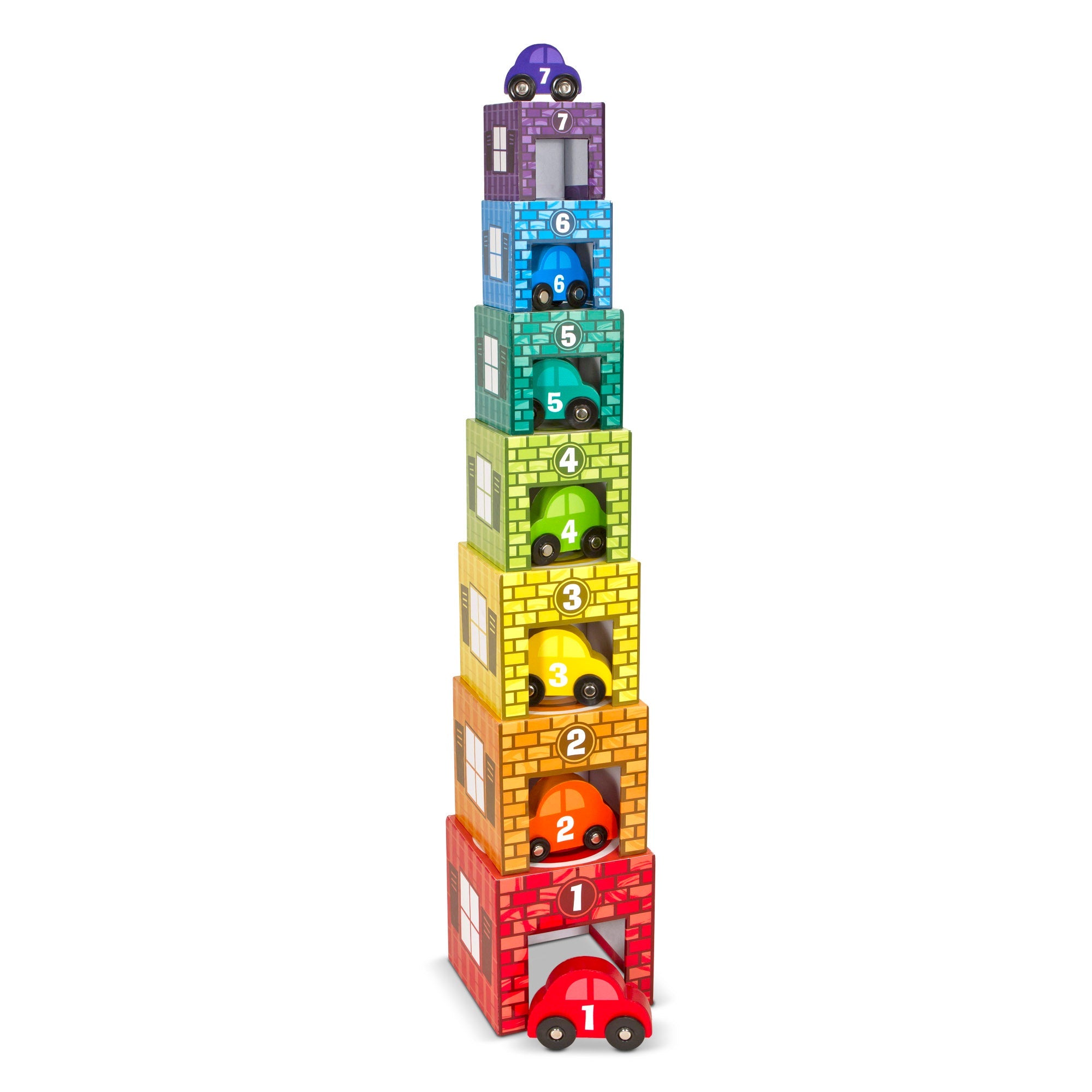 Zoom the wooden cars, build with the blocks, match the cars to their garages--there are lots of ways to play and learn with this versatile learning set! The seven graduated garages (all decorated with objects to count and colors to match) can be arranged to make a colorful town, or stacked to make a tower tall with learning opportunities. Then nest them for neat and easy storage! Best of all, each one matches one of seven stackable wooden cars by size, color, and number, opening up endless opportunities for stacking, counting, hide-and-seek, mix-and-match, imaginative play. This product is certified by the Forest Stewardship Council. FSC certification ensures that products come from responsibly managed forests that provide environmental, social, and economic benefits, and that forests are protected for future generations. Please note that FSC certification applies to new inventory only (FSC C156584)